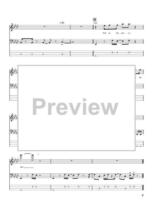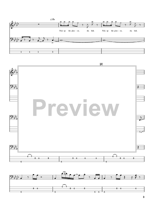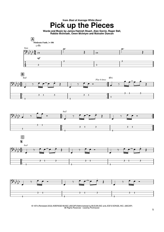 Digital Sheet Music for Pick Up The Pieces by Alan Gorrie, Roger Ball, Owen McIntyre, Malcolm Duncan, Robbie McIntosh, Average White Band, James Hamish Stuart scored for Bass Tab; id:390123
