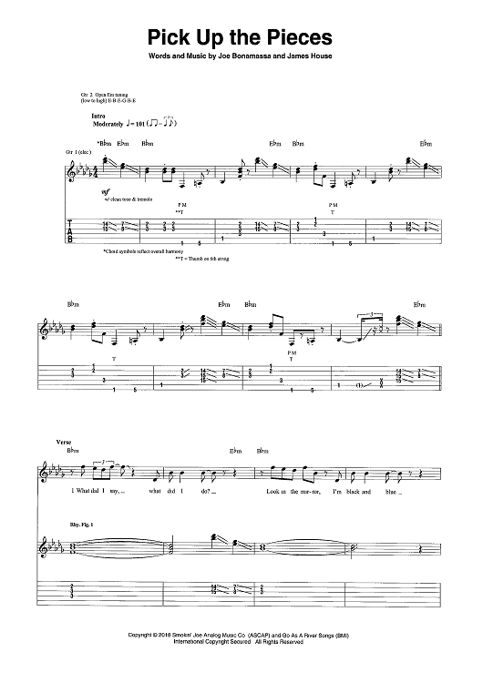 Digital Sheet Music for Pick Up The Pieces by James House, Joe Bonamassa scored for Guitar Tab/Vocal/Chords; id:466936