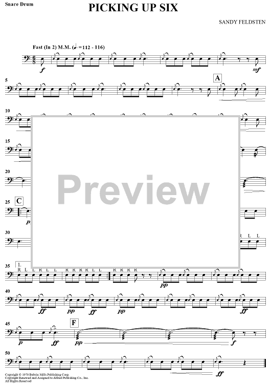 Digital Sheet Music for Picking Up Six by Sandy (Saul) Feldstein scored for Snare Drum/Piano; id:435231