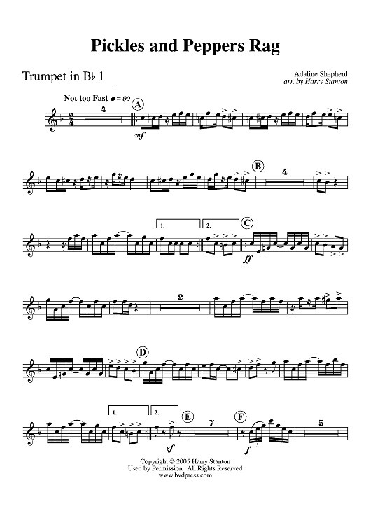 "Pickles and Peppers Rag - Trumpet 1" Sheet Music by Adaline Shepherd