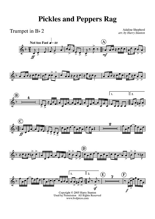"Pickles and Peppers Rag - Trumpet 2" Sheet Music by Adaline Shepherd
