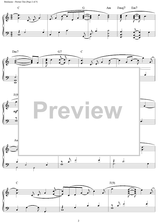 Digital Sheet Music for Picture This by Jim Brickman scored for Piano Solo; id:112772