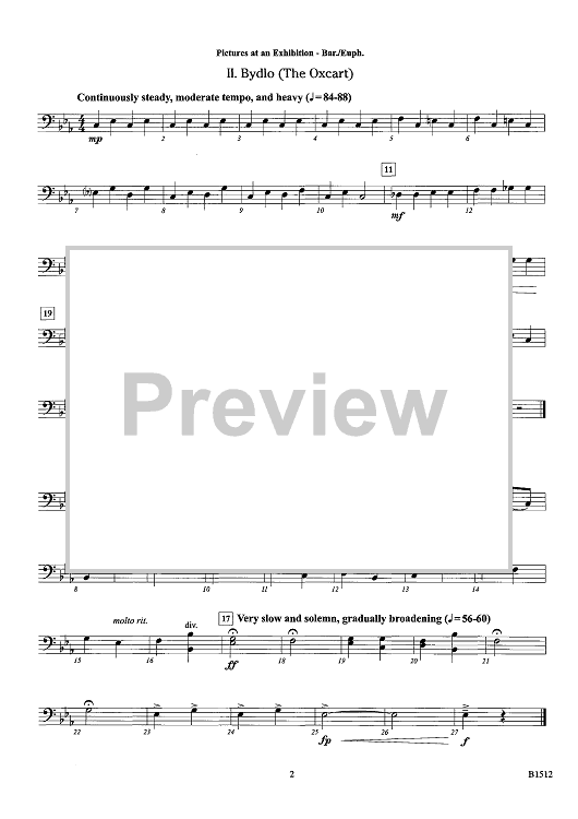 Digital Sheet Music for Pictures at an Exhibition - Baritone/Euphonium by Modest Mussorgsky, Timothy Loest scored for Concert Band; id:439759