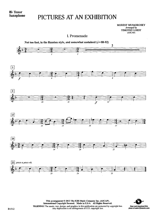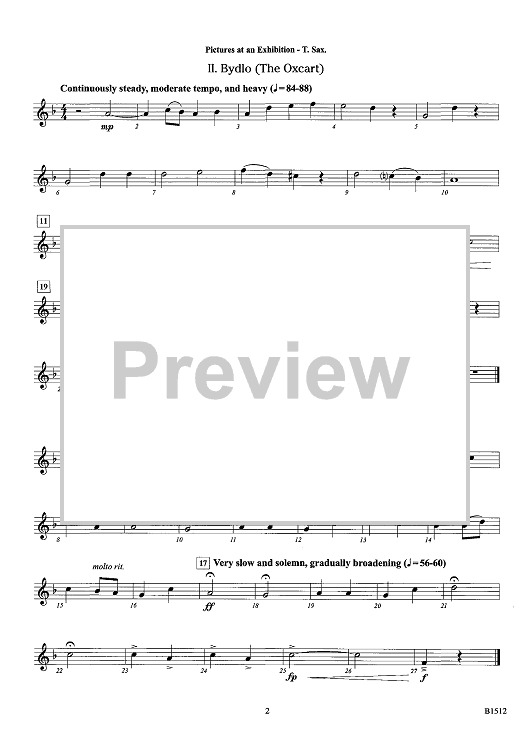 Digital Sheet Music for Pictures at an Exhibition - Bb Tenor Sax by Modest Mussorgsky, Timothy Loest scored for Concert Band; id:439753
