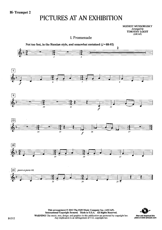 Digital Sheet Music for Pictures at an Exhibition - Bb Trumpet 2 by Modest Mussorgsky, Timothy Loest scored for Concert Band; id:439756