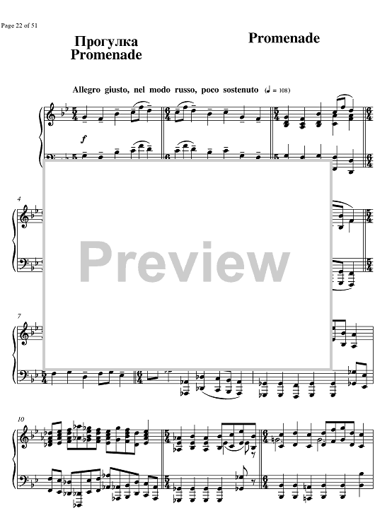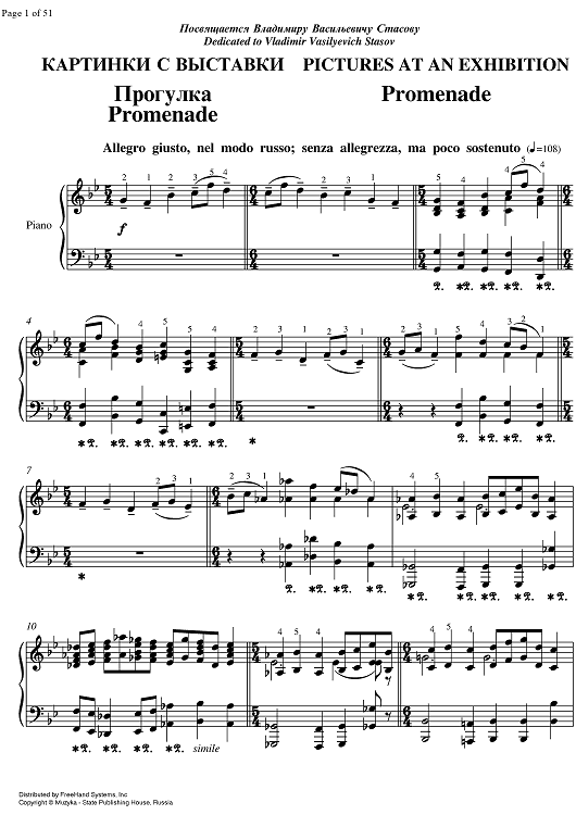 Digital Sheet Music for Pictures at an Exhibition by , Modest Musorgsky scored for Piano Solo; id:330181