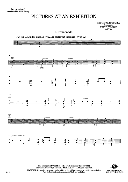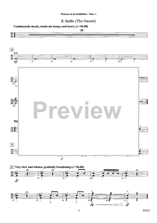 Digital Sheet Music for Pictures at an Exhibition - Percussion 1 by Modest Mussorgsky, Timothy Loest scored for Concert Band; id:439764