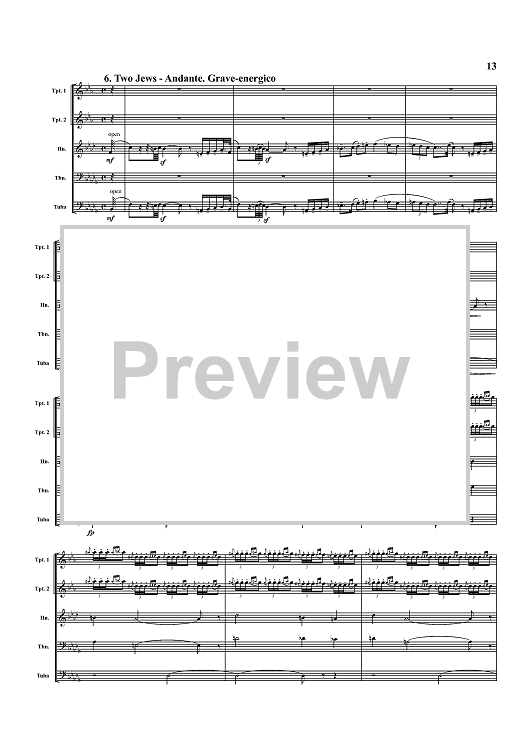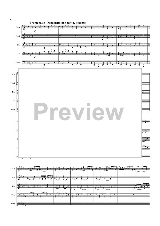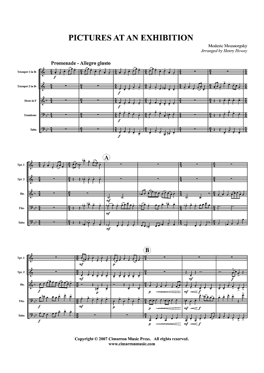 Digital Sheet Music for Pictures at an Exhibition - Score by Henry Howey, Modest Musorgsky scored for Brass Quintet; id:365588