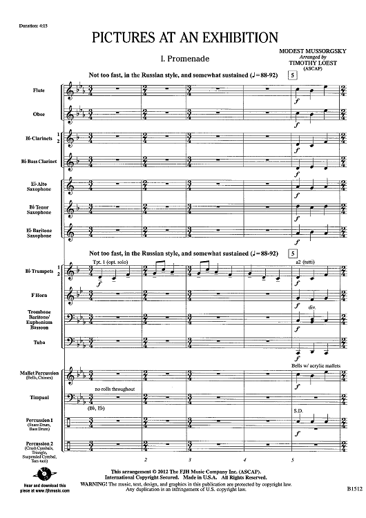Digital Sheet Music for Pictures at an Exhibition - Score by Modest Mussorgsky, Timothy Loest scored for Concert Band; id:439744