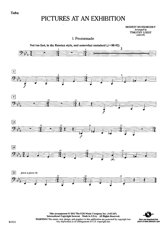 Digital Sheet Music for Pictures at an Exhibition - Tuba by Modest Mussorgsky, Timothy Loest scored for Concert Band; id:439761