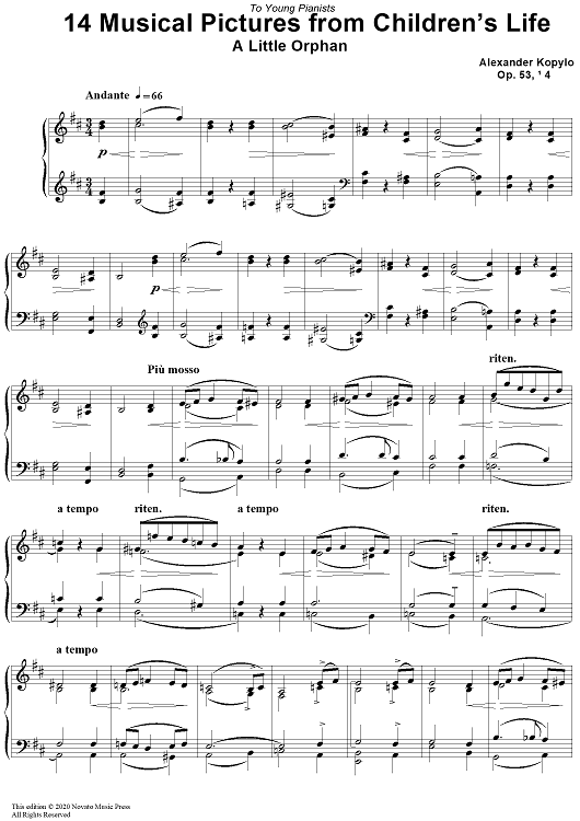 "Pictures from Children’s Life - A Little Orphan" Sheet Music by Alexander Kopylov