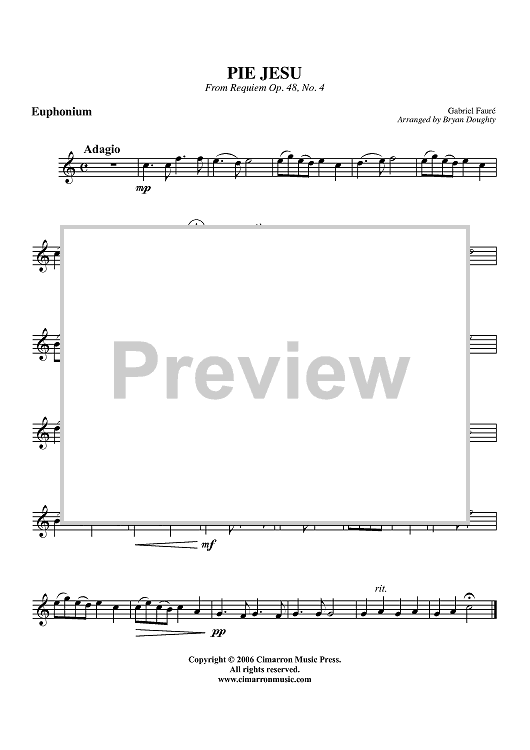 Digital Sheet Music for Pie Jesu (from Requiem Op. 48, No. 4) - Euphonium BC/TC by Gabriel Fauré, Bryan Doughty scored for Euphonium/Piano; id:360178