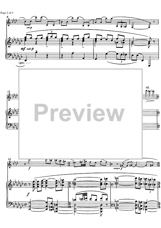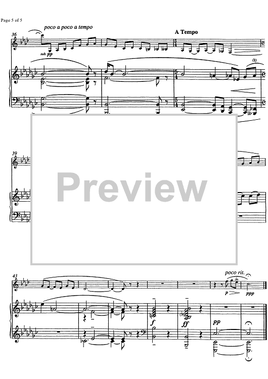 Digital Sheet Music for Pièce lente - Score by , René Gerber scored for Clarinet/Piano; id:334981