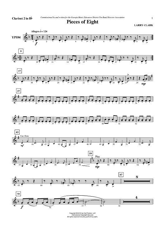 "Pieces of Eight - Clarinet 2 in B-flat" Sheet Music by Larry Clark
