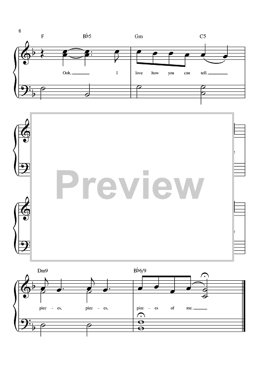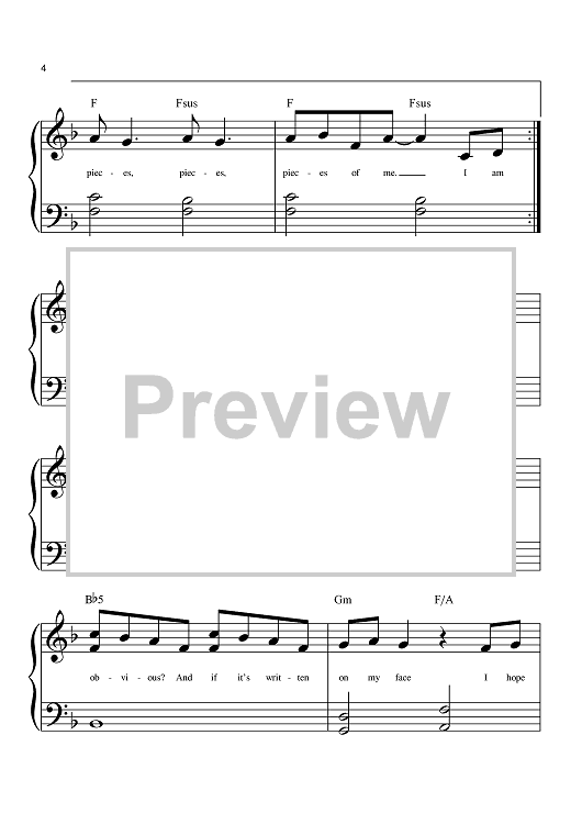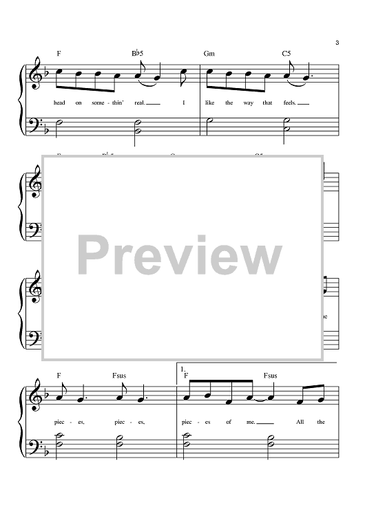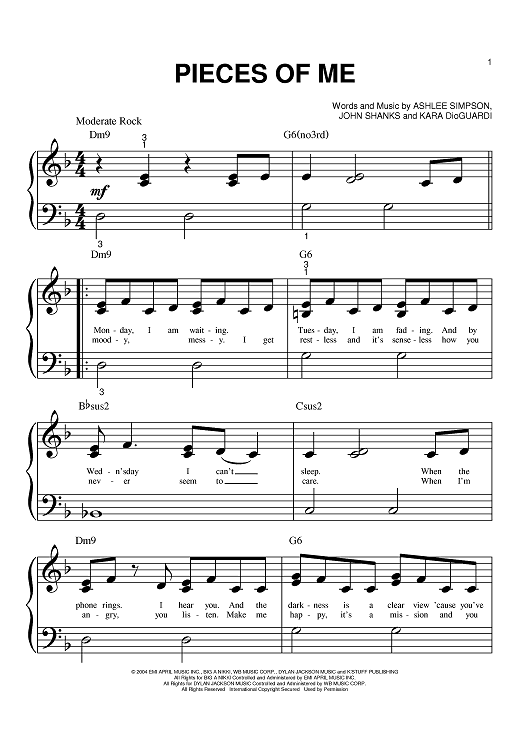 Digital Sheet Music for Pieces Of Me by John Shanks, Kara DioGuardi, Ashlee Simpson scored for Big Note Piano; id:381757