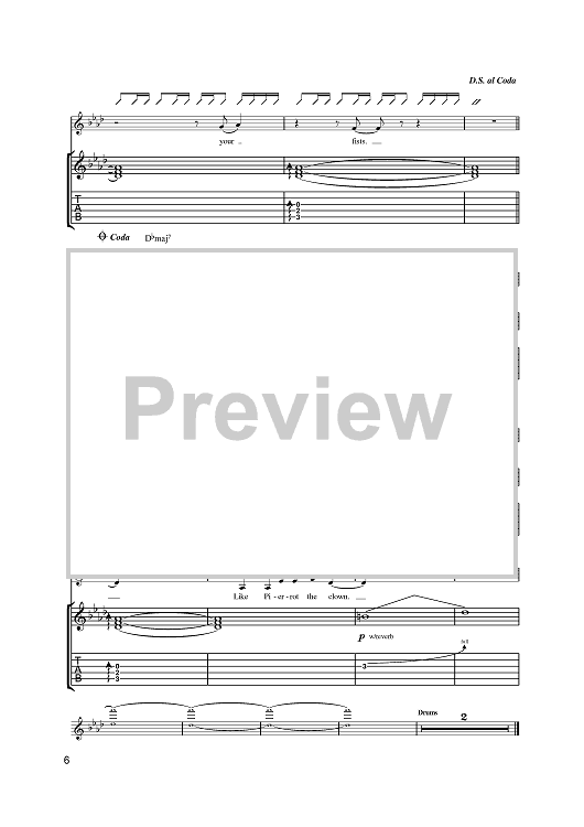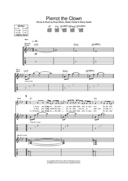 Digital Sheet Music for Pierrot The Clown by Steve Hewitt, Brian Molko, Stefan Olsdal, Placebo scored for Guitar Tab; id:395586
