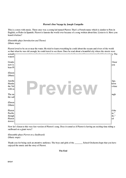 "Pierrot's Bon Voyage - narrator" Sheet Music by Joseph Compello