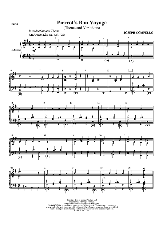 "Pierrot's Bon Voyage - Piano" Sheet Music by Joseph Compello