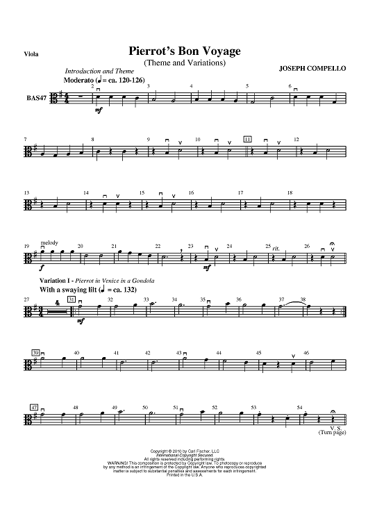 "Pierrot's Bon Voyage - Viola" Sheet Music by Joseph Compello