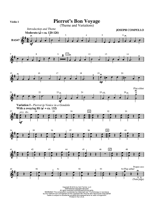 "Pierrot's Bon Voyage - Violin 1" Sheet Music by Joseph Compello