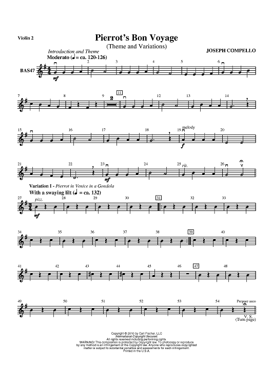 "Pierrot's Bon Voyage - Violin 2" Sheet Music by Joseph Compello