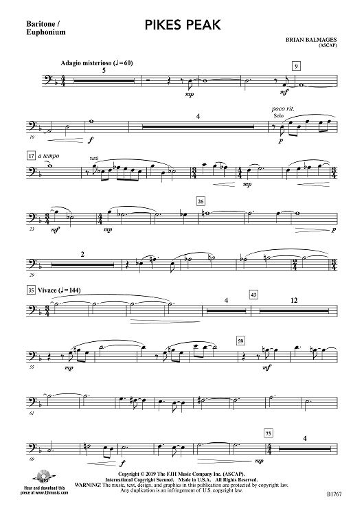 "Pikes Peak - Baritone / Euphonium" Sheet Music by Brian Balmages