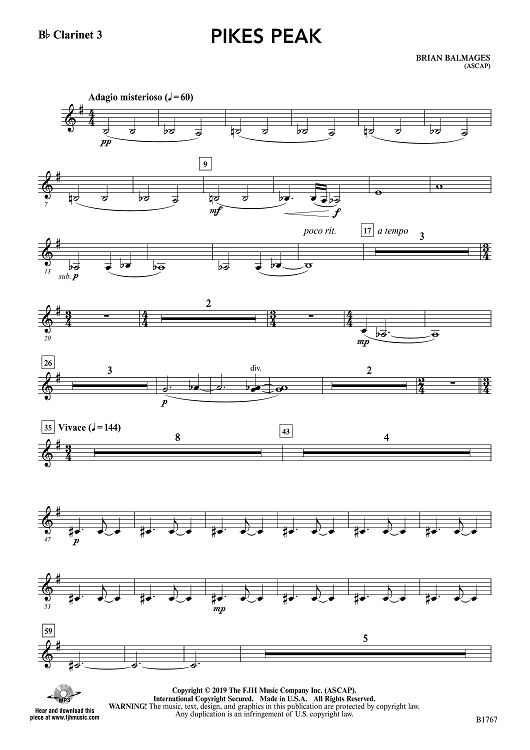 "Pikes Peak - Bb Clarinet 3" Sheet Music by Brian Balmages