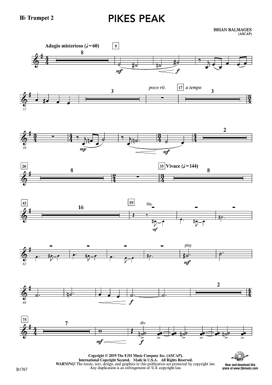 "Pikes Peak - Bb Trumpet 2" Sheet Music by Brian Balmages