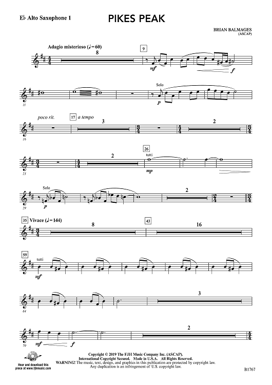 "Pikes Peak - Eb Alto Saxophone 1" Sheet Music by Brian Balmages