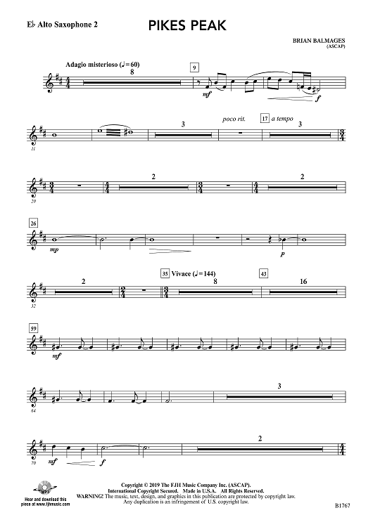 "Pikes Peak - Eb Alto Saxophone 2" Sheet Music by Brian Balmages
