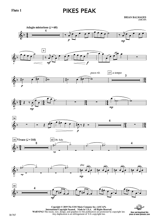 "Pikes Peak - Flute 1" Sheet Music by Brian Balmages