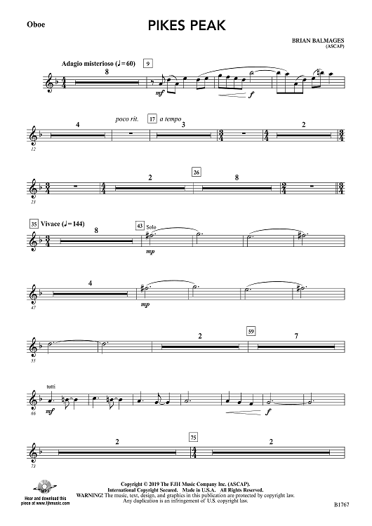"Pikes Peak - Oboe" Sheet Music by Brian Balmages