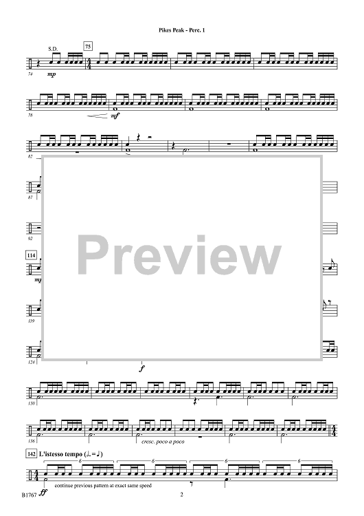 "Pikes Peak - Percussion 1" Sheet Music by Brian Balmages