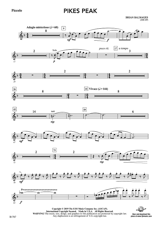 "Pikes Peak - Piccolo" Sheet Music by Brian Balmages