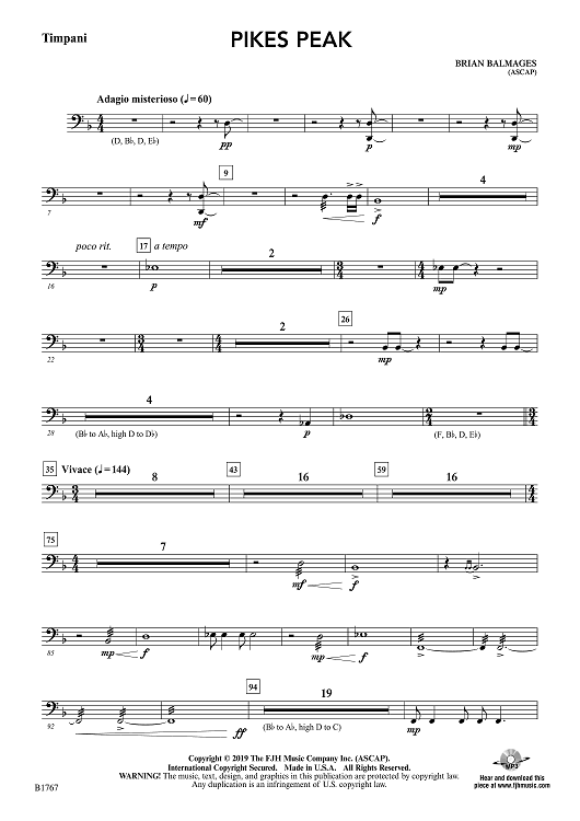 "Pikes Peak - Timpani" Sheet Music by Brian Balmages