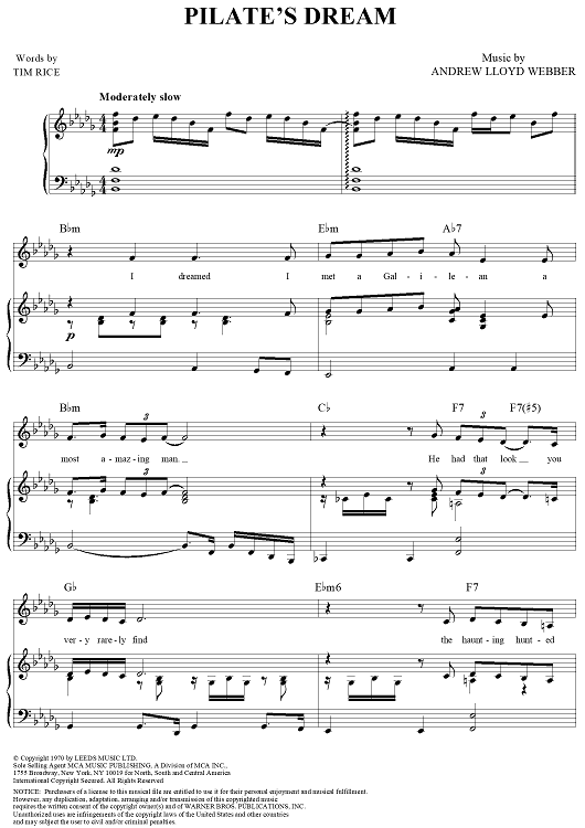 Digital Sheet Music for Pilate's Dream by Andrew Lloyd Webber, Tim Rice scored for Piano/Vocal/Chords; id:296551