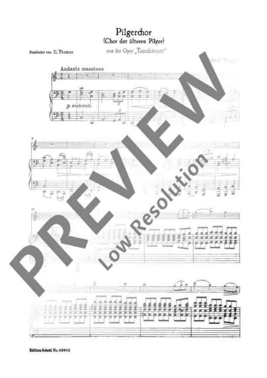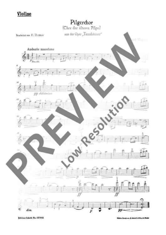 Digital Sheet Music for Pilgerchor by Richard Wagner, E. Thomas scored for Violin (cello) And Piano; id:494952