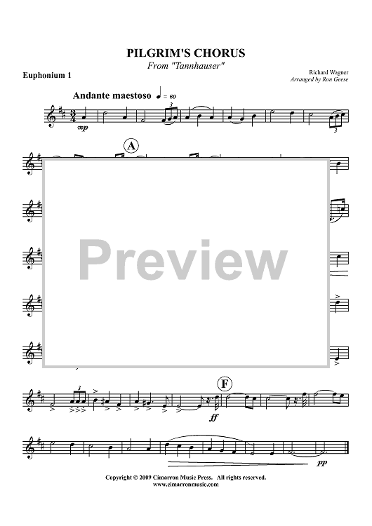 Digital Sheet Music for Pilgrim’s Chorus - Euphonium 1 by Richard Wagner, Ron Geese scored for Tuba Quartet; id:409815