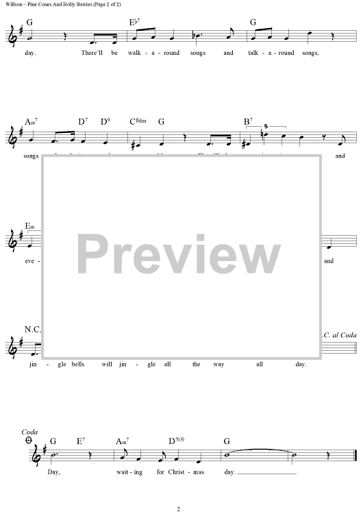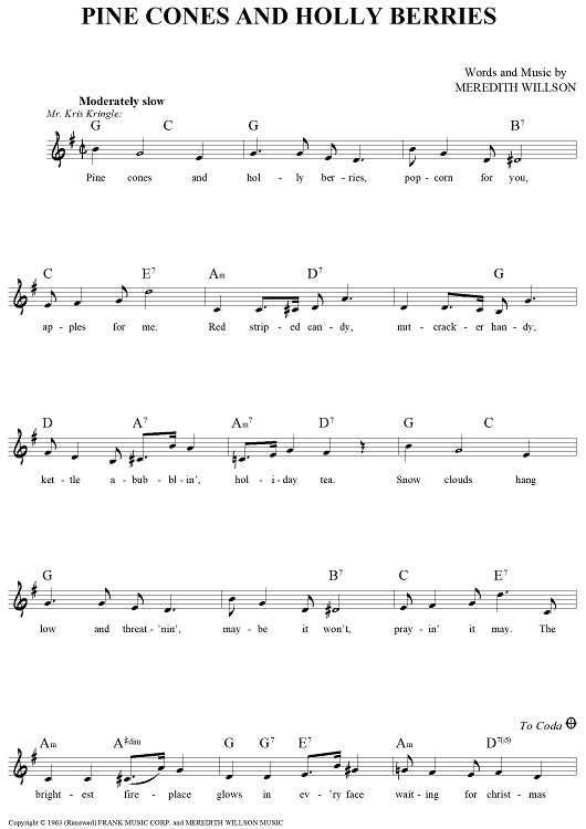 Digital Sheet Music for Pine Cones and Holly Berries by Meredith Willson scored for Lead Sheet; id:446638