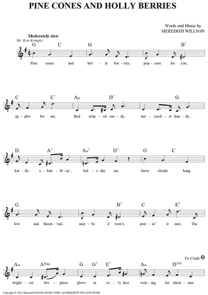 "Pine Cones and Holly Berries" Sheet Music by Meredith Willson