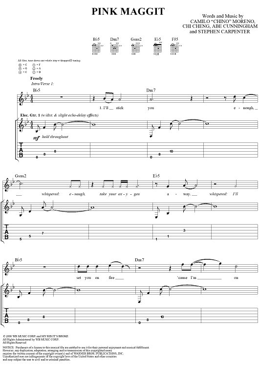 Digital Sheet Music for Pink Maggit by Deftones, Chino Moreno, Chi Cheng, Abe Cunningham scored for Guitar Tab/Vocal; id:286538