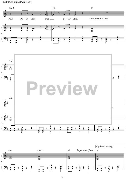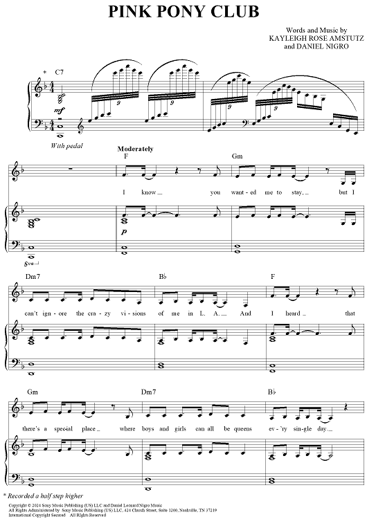 Digital Sheet Music for Pink Pony Club by Daniel Nigro, Chappell Roan scored for Piano/Vocal/Chords; id:503951