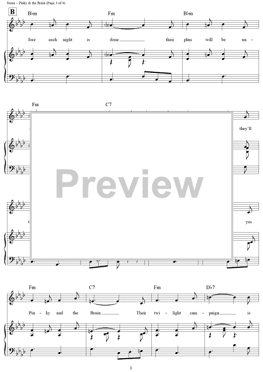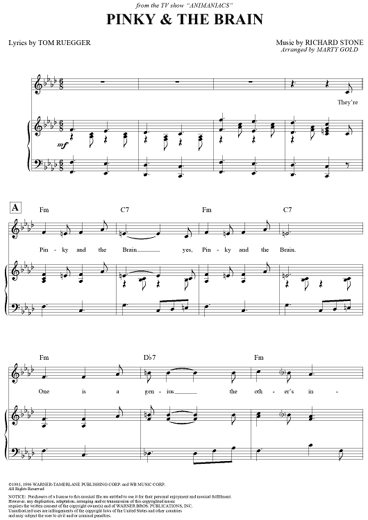 Digital Sheet Music for Pinky & the Brain by Marty Gold, Richard Stone, Tom Ruegger scored for Piano/Vocal/Chords; id:119967