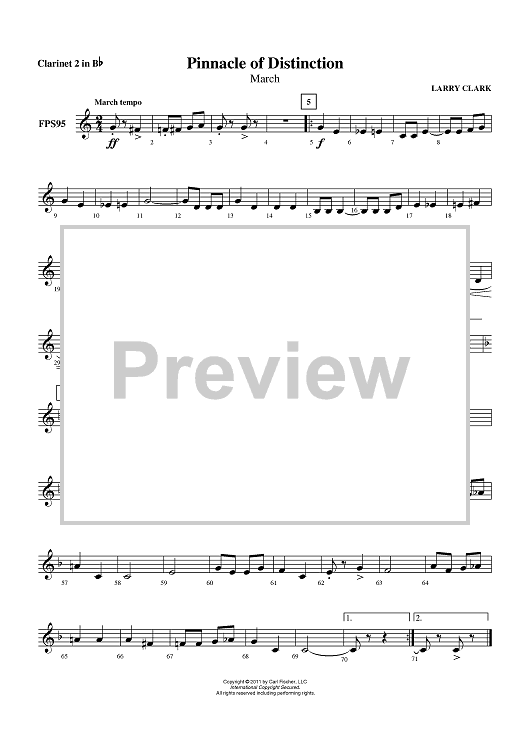 Digital Sheet Music for Pinnacle of Distinction (March) - Clarinet 2 in Bb by Larry Clark scored for Concert Band; id:420530