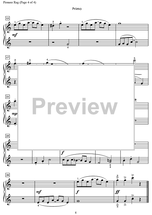Digital Sheet Music for Pioneer Rag by Wynn-Anne Rossi scored for 1 Piano, 4 Hands; id:469640