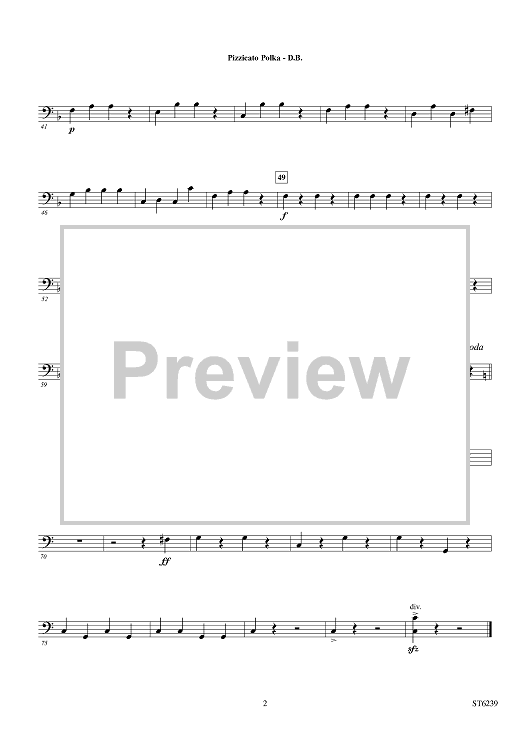 Digital Sheet Music for Pizzicato Polka - Double Bass by Josef Strauss, Robert D. McCashin, Johann Strauss, Jr. scored for String Orchestra; id:421924