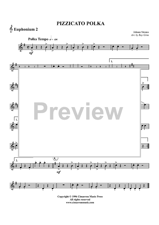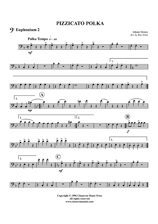Digital Sheet Music for Pizzicato Polka - Euphonium 2 BC/TC by Johann Strauss I, Ray Grim scored for Tuba Quartet; id:319267