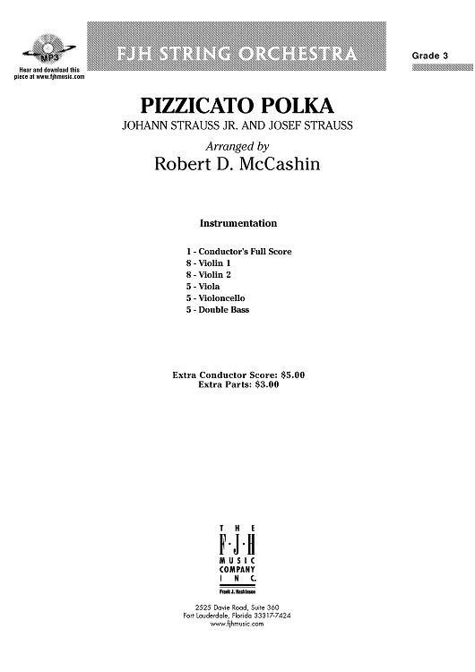 Digital Sheet Music for Pizzicato Polka - Score by Josef Strauss, Robert D. McCashin, Johann Strauss, Jr. scored for String Orchestra; id:421919