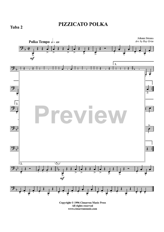 Digital Sheet Music for Pizzicato Polka - Tuba 2 by Johann Strauss I, Ray Grim scored for Tuba Quartet; id:319269