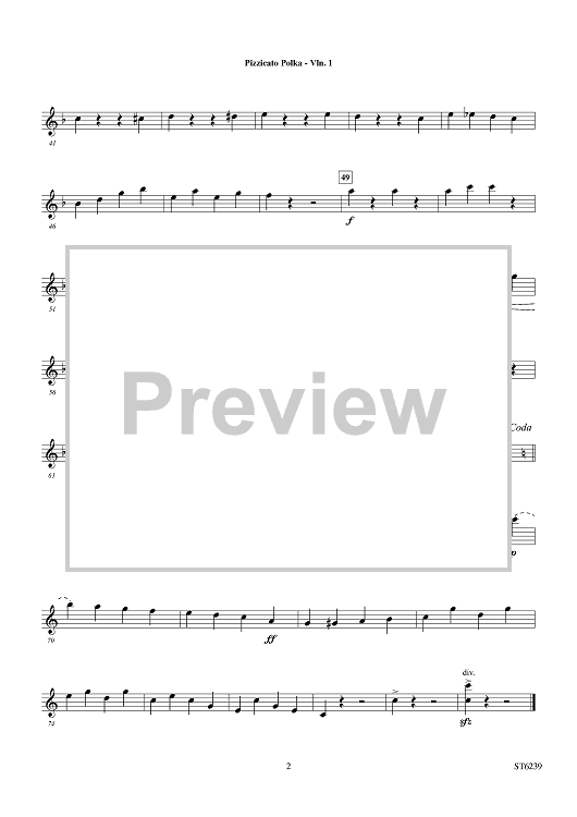 Digital Sheet Music for Pizzicato Polka - Violin 1 by Josef Strauss, Robert D. McCashin, Johann Strauss, Jr. scored for String Orchestra; id:421920